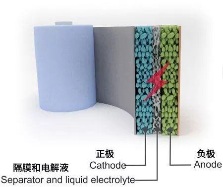 商用的鋰離子電池主要由四部分組成,分別是正極、負(fù)極、隔膜和電解液。