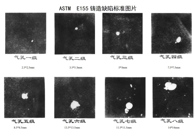 工業件體積大,探測面積也大,個別不在關鍵位置的小氣孔對鑄件的影響其實并不大,那為何還要進行X射線無損檢測呢?其實檢測的目的并不是僅僅發現小氣孔,而是檢測其內部是否存在連成一片密集的疏松面,這樣的缺陷就比較嚴重。國內工業起步較早,國內、國際的相關標準也比較完善,下面是STM的國際鑄造缺陷圖,它是一個用來衡量缺陷的標準。