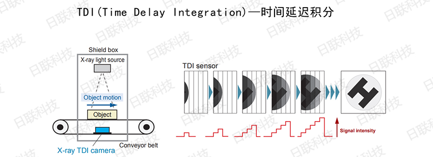 就普通線陣成像器來說,線陣成像器的成像區域如第一幅圖,可以理解為一條線,但TDI則不止,它有好幾條線并列來進行成像,如上圖右邊TDI sensor中有五條線,當物體移動時每條線都在取圖,**進行整合。可以簡單理解為:多條線陣,每條線陣檢測取圖后將數據疊加,可以看作物體被檢測曝光了多次,增加了有效信息,因此相較傳統LDA動態范圍寬,響應度高,且即使在光線較暗的場所,也能輸出質量較高的圖像。