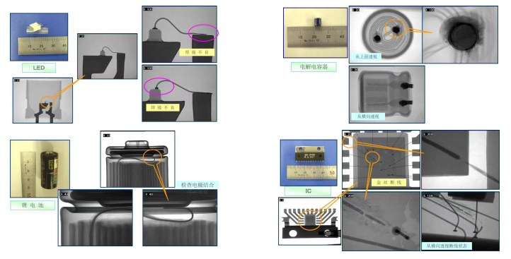 主要檢測內容為:內部探傷(氣孔、沙眼、縮松及焊接焊縫);內部結構比照(檢查內部有無雜質物,軸承、陶瓷件、絕緣子內部結構是否有缺陷、安裝不到位等);自動測量測算(輪轂設備)等等。部分檢測圖片(由日聯科技X-RAY設備出圖):