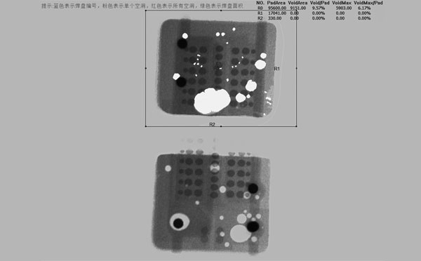 BGA元器件在電焊焊接結(jié)束后,基于其點焊全被元器件本體所覆蓋,所以既沒法選用傳統(tǒng)的目測方法觀察檢測全部點焊的電焊焊接質(zhì)量,也不能應(yīng)用自動光學(xué)檢測設(shè)備對點焊的外觀做質(zhì)量評判。為達(dá)到有效的檢測,可選用X-ray檢測設(shè)備對BGA元器件的點焊進(jìn)行檢測。