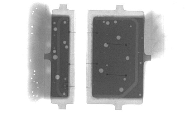 X-RAY檢測設備通過穿透樣品、檢測樣品內部缺陷,是當前非破壞檢測內部缺陷效率且快速的方法只要。LED燈條板的主要故障集中在綁定金線。利用X-RAY檢測設備對LED燈條檢測并生成的影像圖,可以清楚的看到LED燈條內部金線的位置以及有無開路、短路等異常。