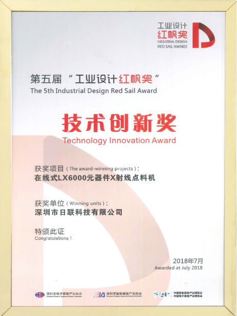 展會同期舉辦了2018第五屆深圳電子裝備產業工業設計“紅帆獎”企業展示、EeIE2018創新成就之夜暨第五屆工業設計“紅帆獎”頒獎典禮,得到了政府、行業機構及廣大企業的高度專注與好評。經過初審、現場評審和公眾投票等環節,日聯在眾多企業中脫穎而出,喜獲工業設計紅帆獎“技術創新獎”。能夠獲得此獎項,是行業協會、專家學者、媒體對日聯科技深厚的工業設計能力的充分肯定,公司將持續科技創新,致力于為工業界提供高端X射線智能檢測裝備及解決方案。